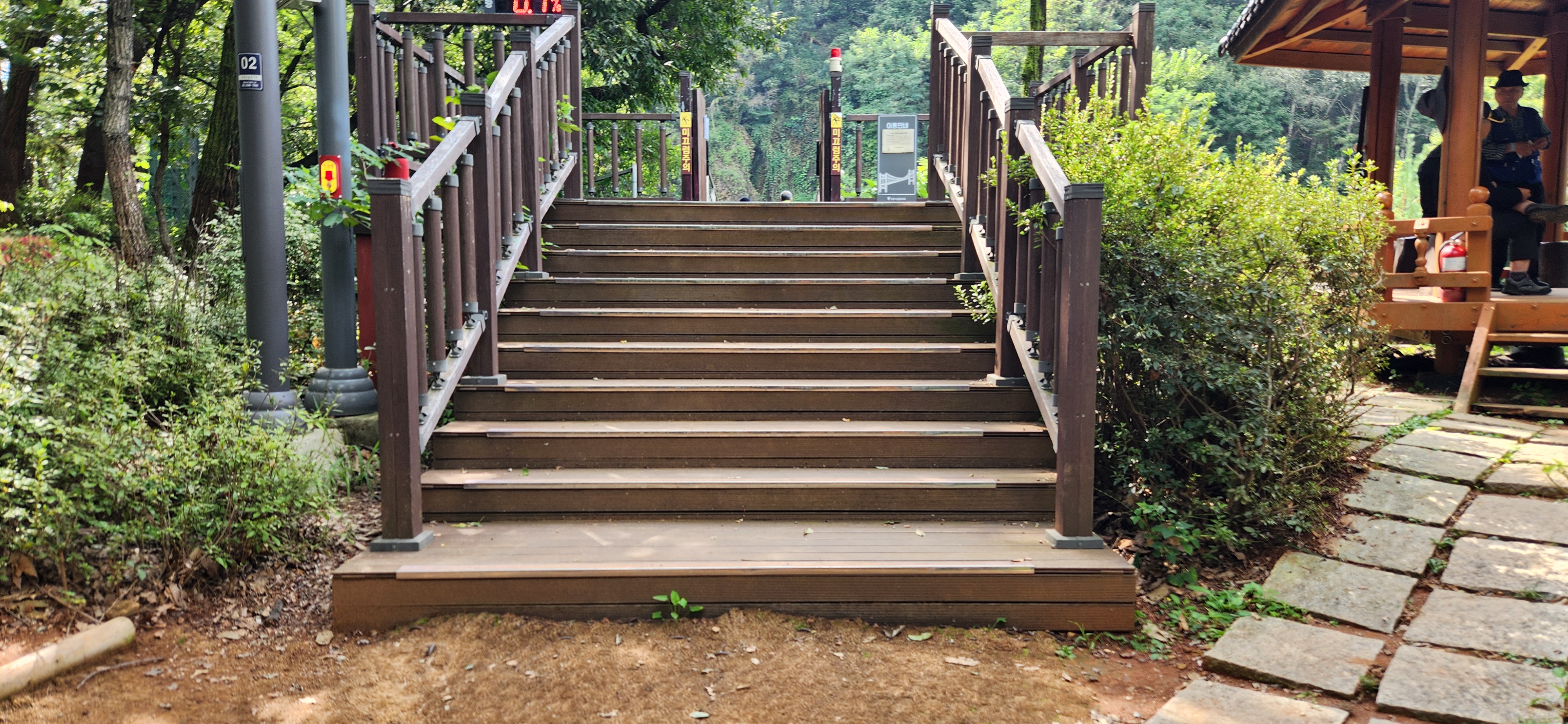 목재데크가 계속 이어져 오다가 목계단으로 바뀝니다.