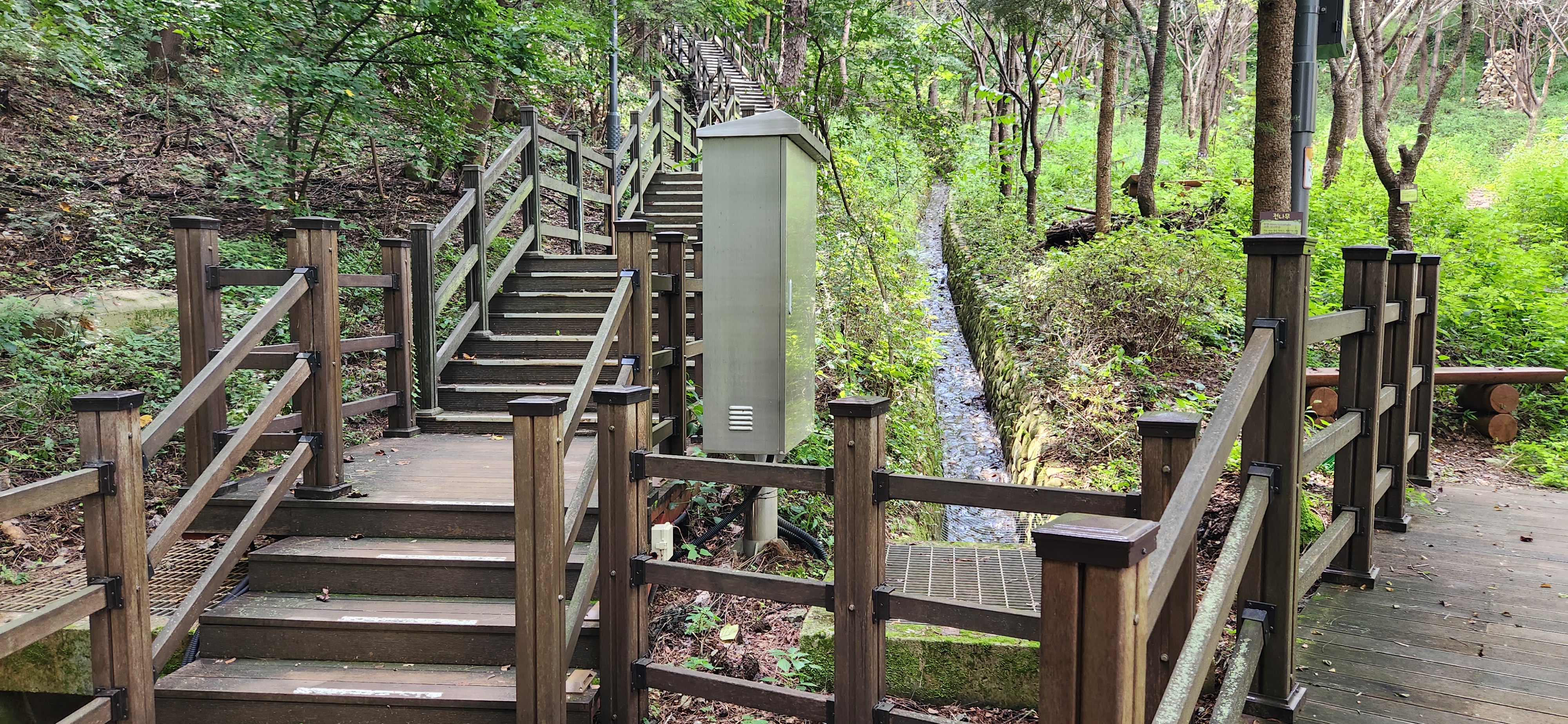 곧이어 데크계단이 나오고 옆에 야외학습장이 위치해 있습니다.