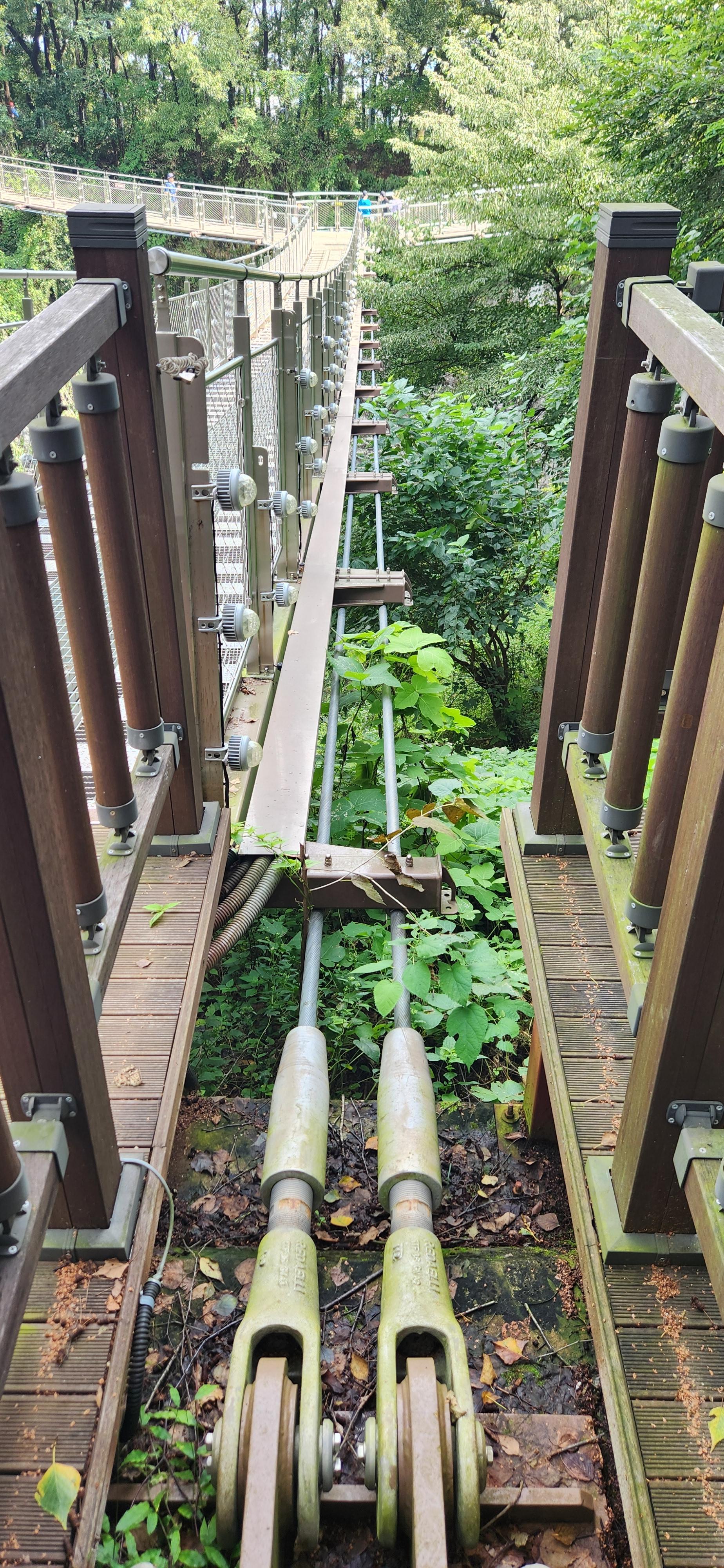 하부 관람데크에서는 위로 설치된 출렁다리의 하부를 볼 수 있습니다.