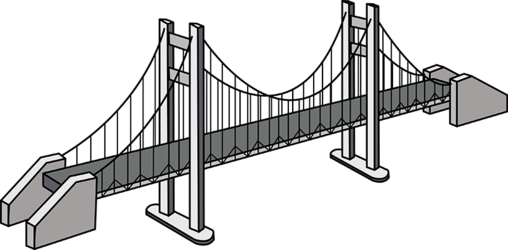 아래 그림처럼 주탑(높은 기둥) 사이에 케이블을 늘어뜨리고 교량상판을 지지하는 교량을 말합니다.